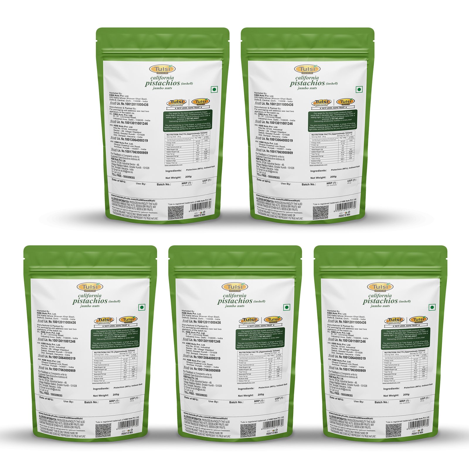 Tulsi California Pistachios Jumbo Nuts Lightly Salted 200g (Pack Of 5) 1000g
